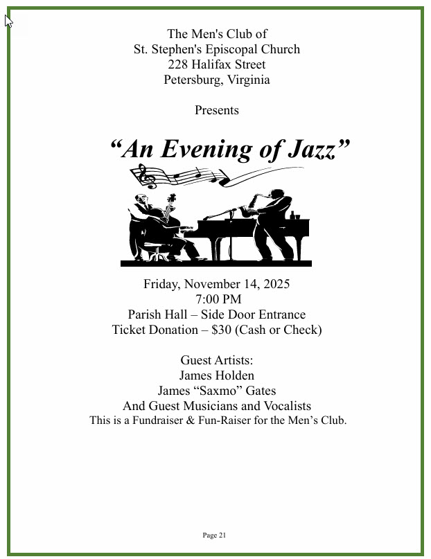 - 10:30 A.M. Sunday, Holy Eucharist Rite II
